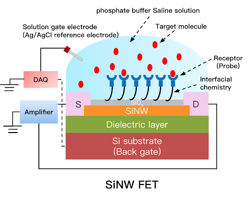 In medicine, SiNW-FETs are revolutionizing disease detection by enabling rapid and accurate diagnostics. By detecting antigen-antibody interactions or nucleic acid hybridization, they can identify viral and bacterial pathogens, demonstrating strong potential for early disease detection.